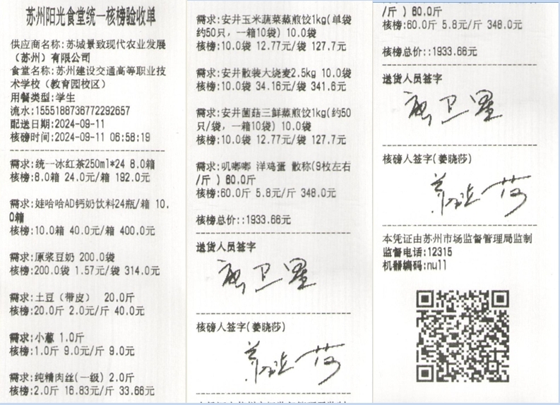 苏州阳光食堂统一核磅验收单(20240911-食材)