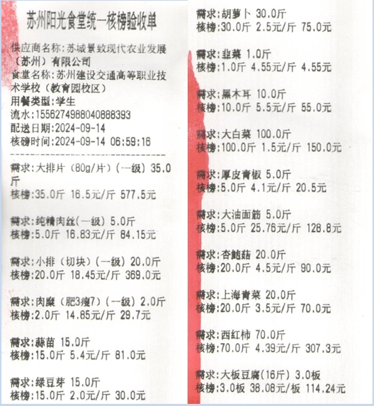 苏州阳光食堂统一核磅验收单(20240914-食材)