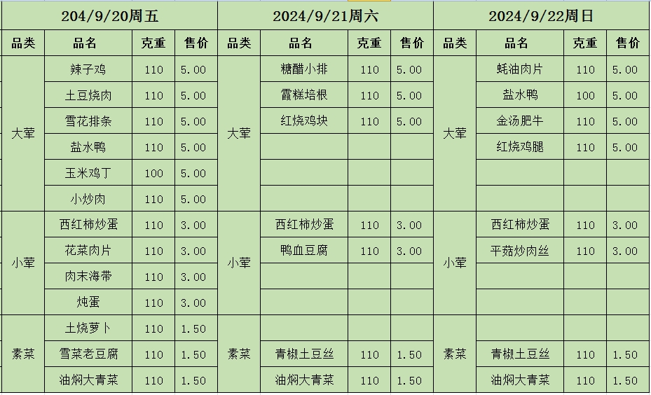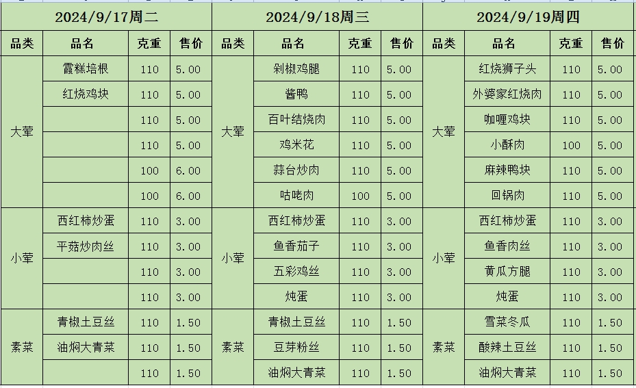 周菜单(2024年09月17日-09月22日--教育园校区食堂)