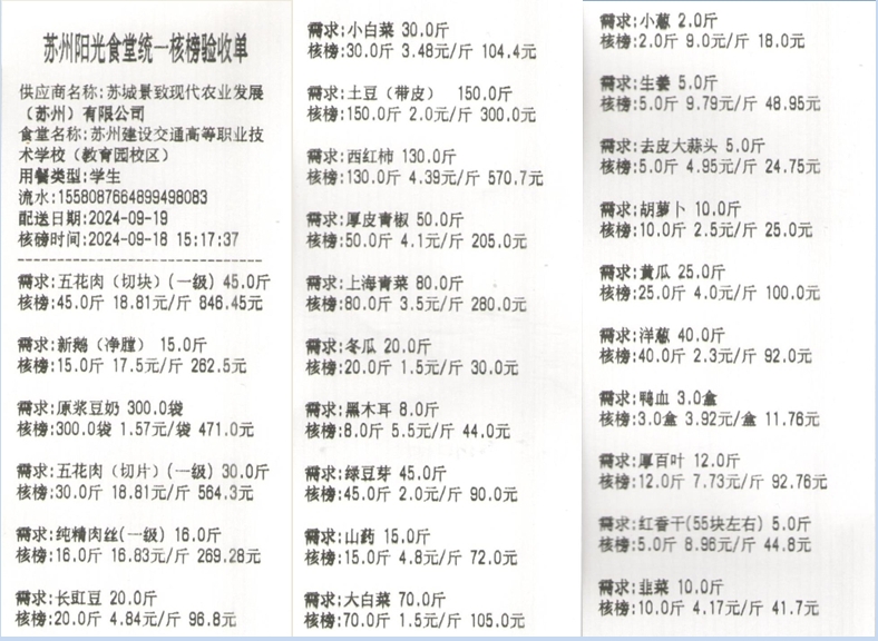 苏州阳光食堂统一核磅验收单(20240919-食材)