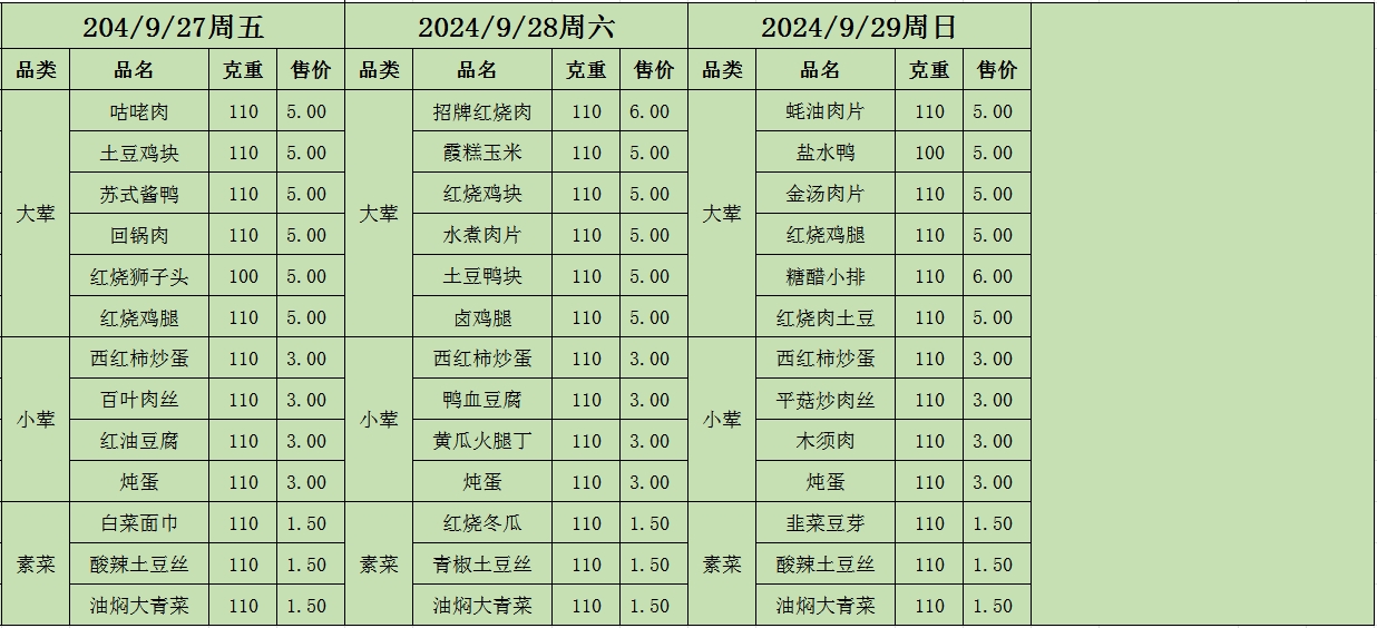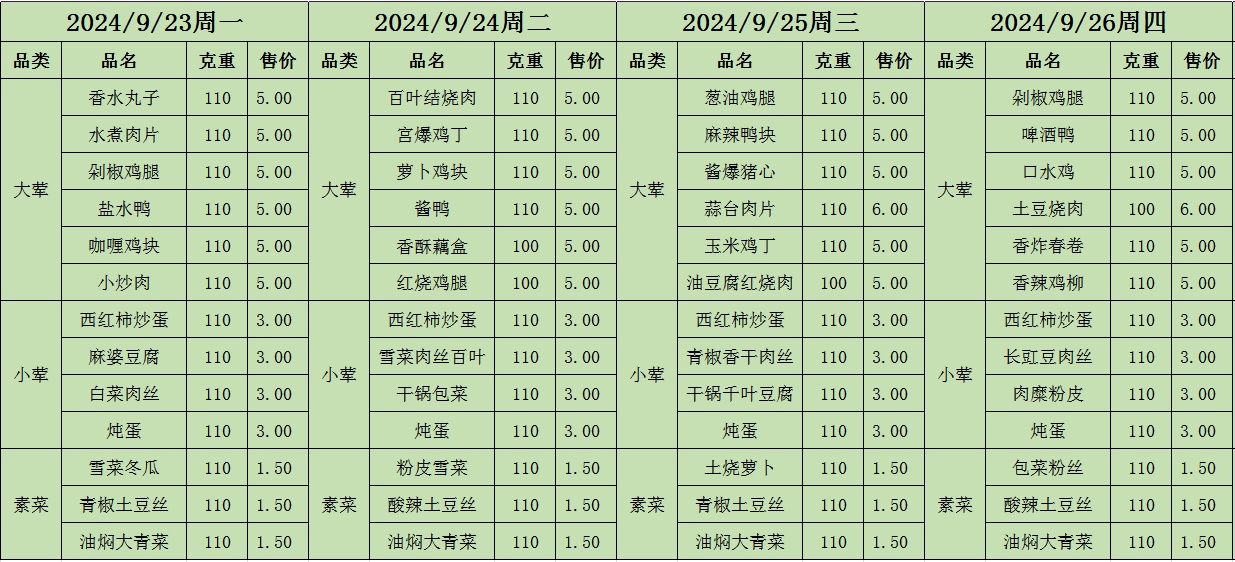 周菜单(2024年09月23日-09月29日--教育园校区食堂)