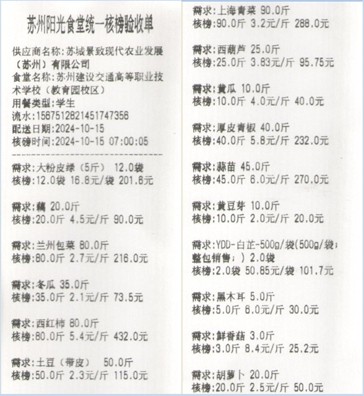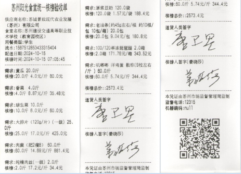 苏州阳光食堂统一核磅验收单(20241015-食材)