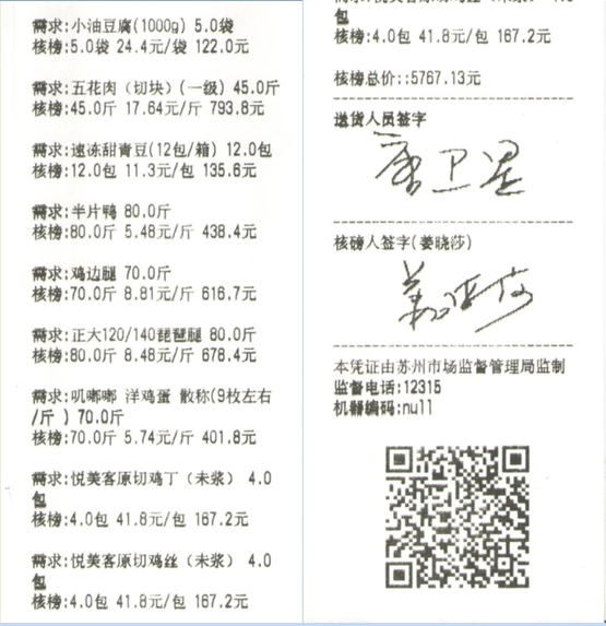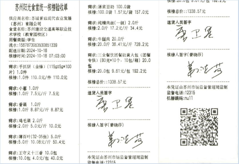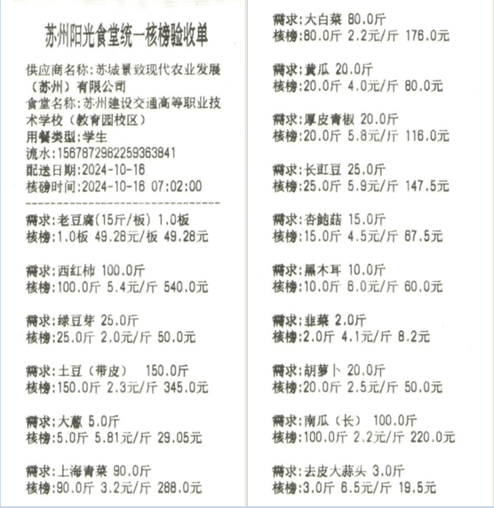 苏州阳光食堂统一核磅验收单(20241016-食材)