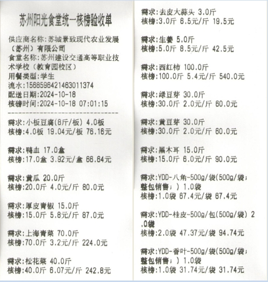 苏州阳光食堂统一核磅验收单(20241018-食材)