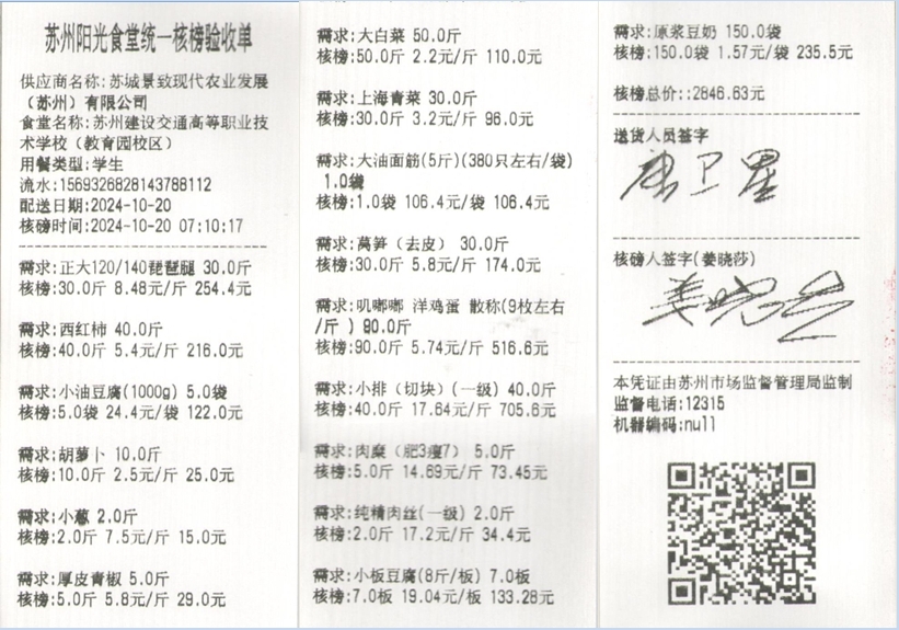 苏州阳光食堂统一核磅验收单(20241020-食材)