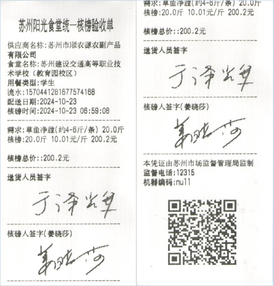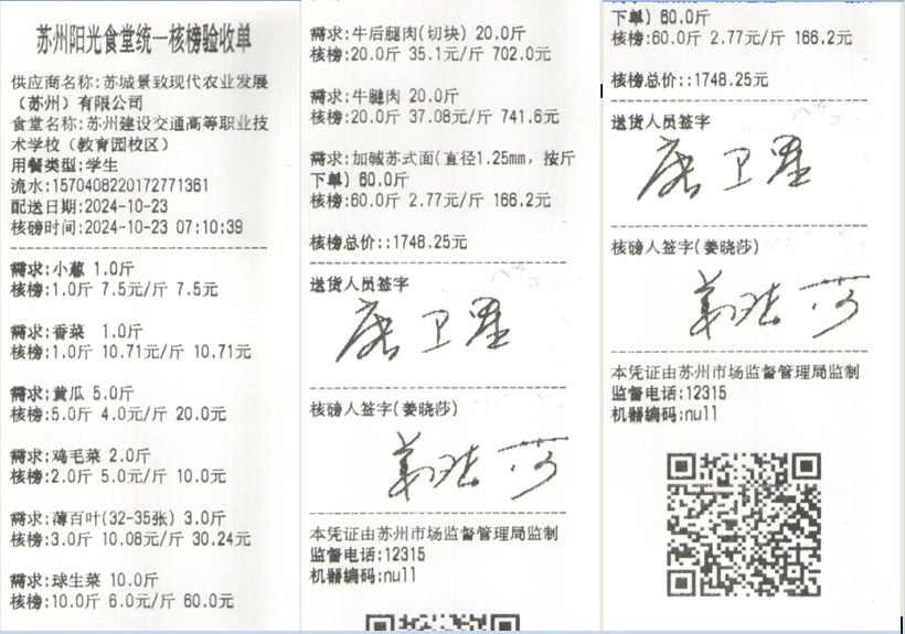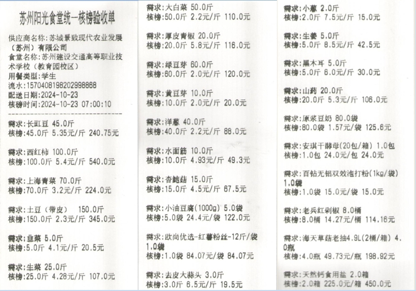苏州阳光食堂统一核磅验收单(20241023-食材)