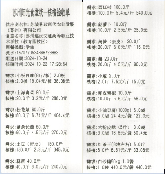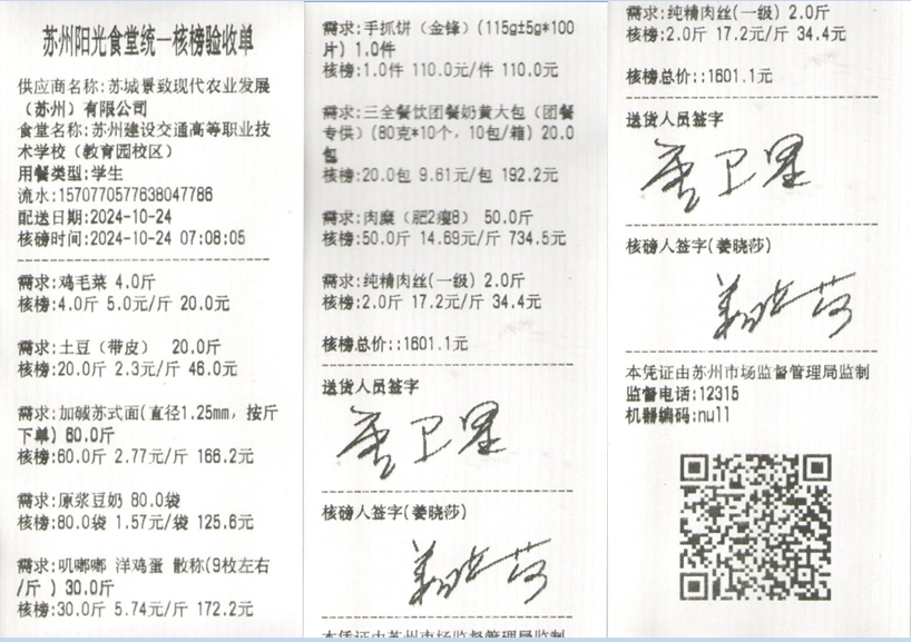 苏州阳光食堂统一核磅验收单(20241024-食材)