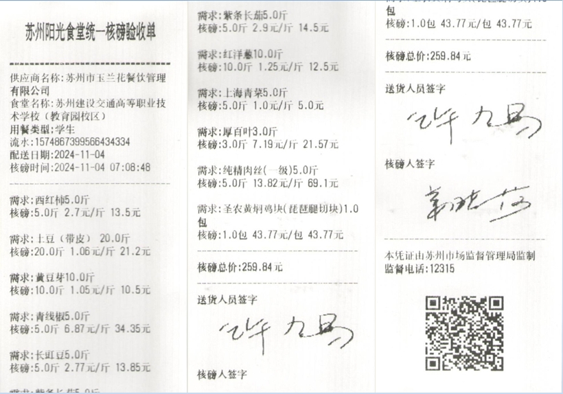 苏州阳光食堂统一核磅验收单(20241104-食材)