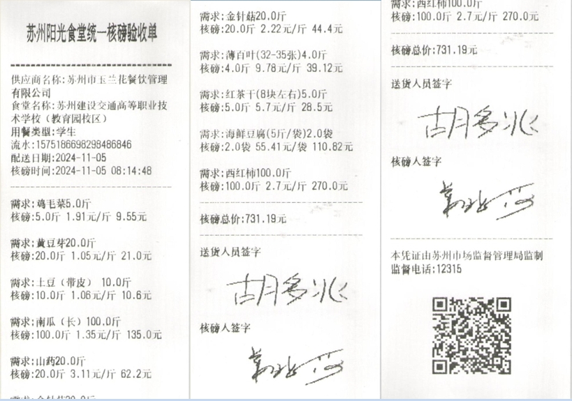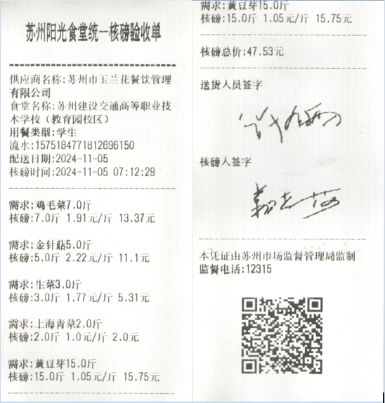 苏州阳光食堂统一核磅验收单(20241105-食材)