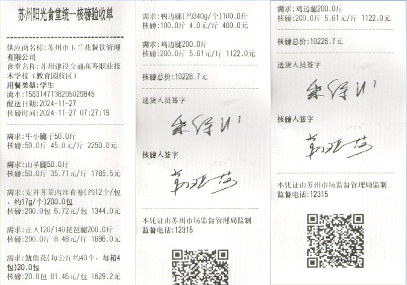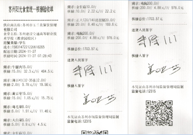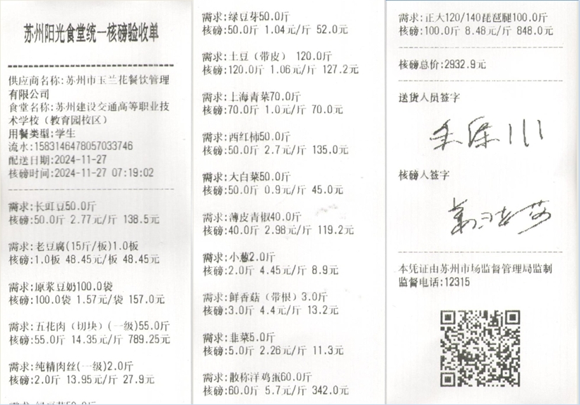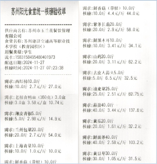 苏州阳光食堂统一核磅验收单(20241127-食材)