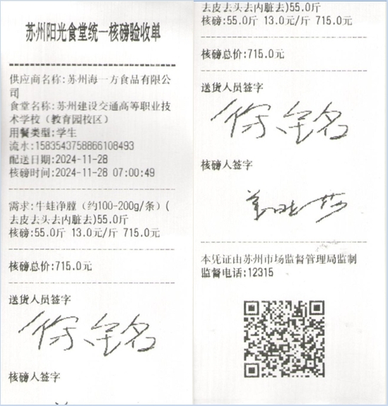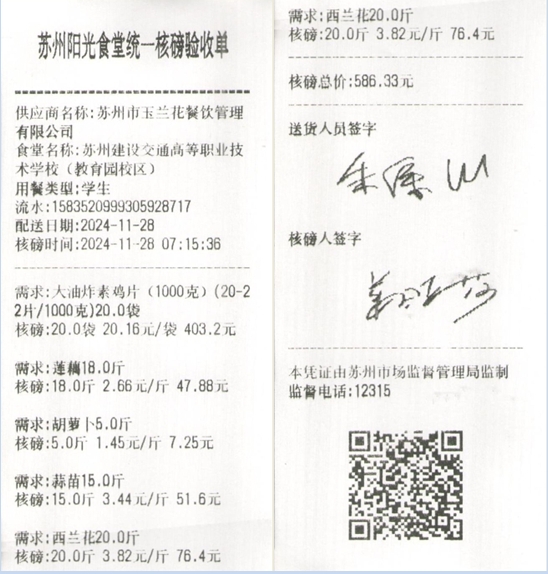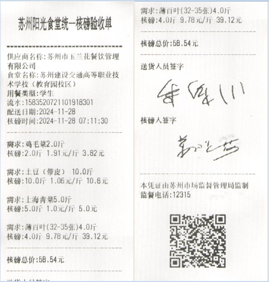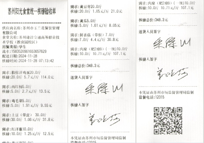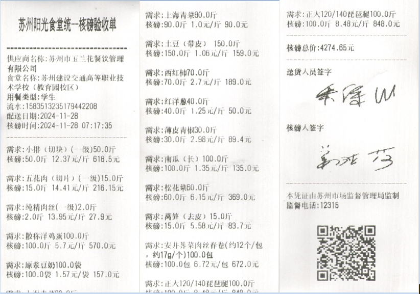 苏州阳光食堂统一核磅验收单(20241128-食材)