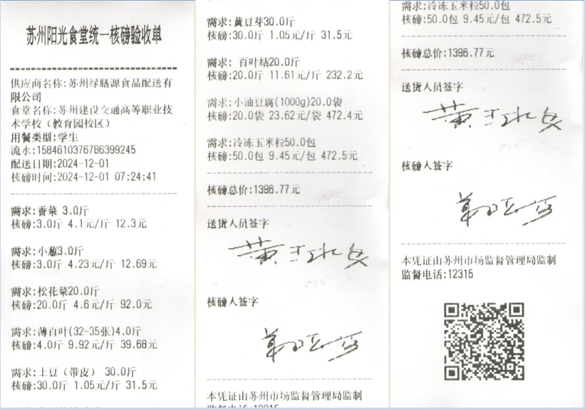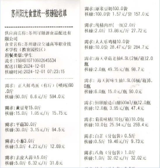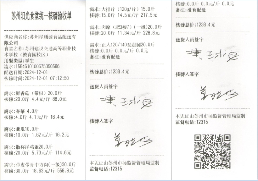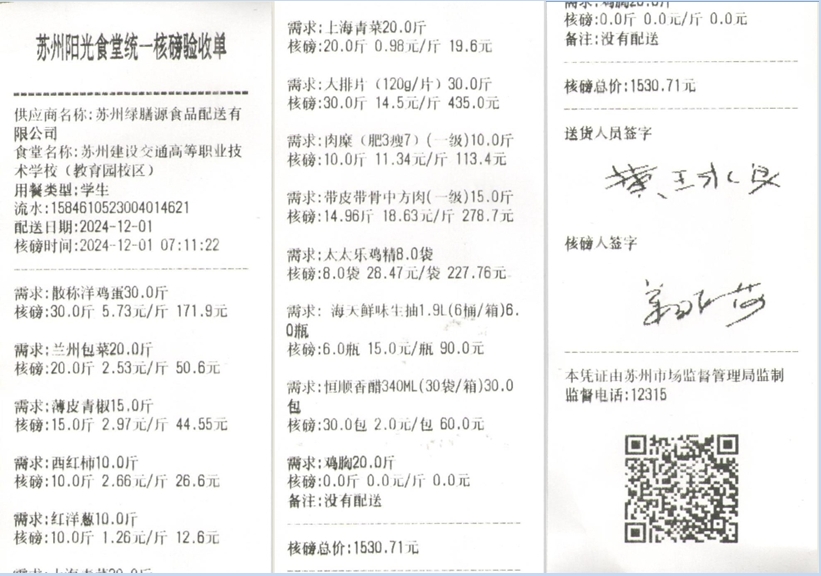 苏州阳光食堂统一核磅验收单(20241201-食材)