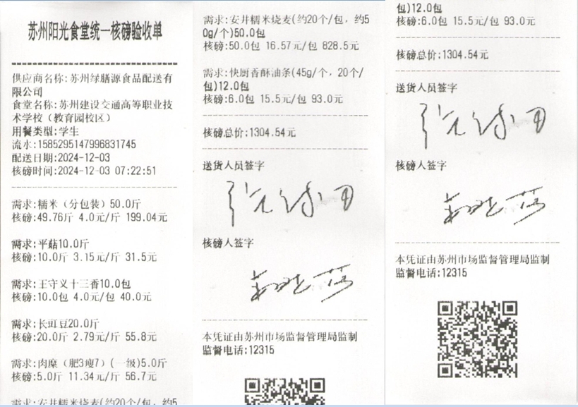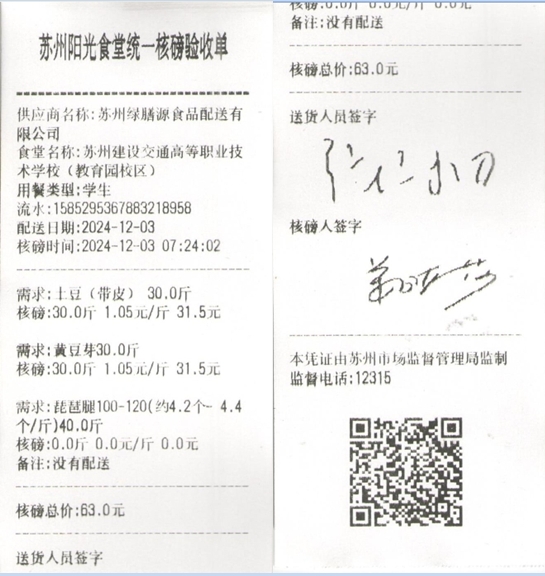 苏州阳光食堂统一核磅验收单(20241203-食材)