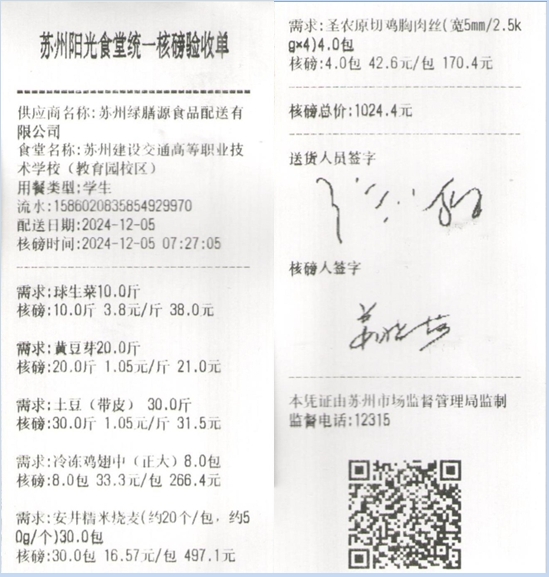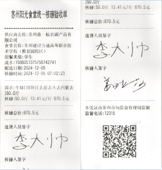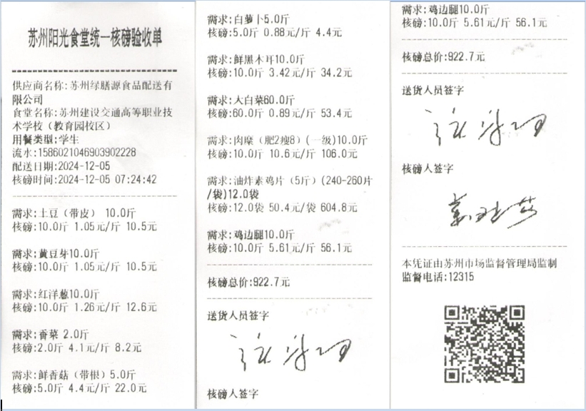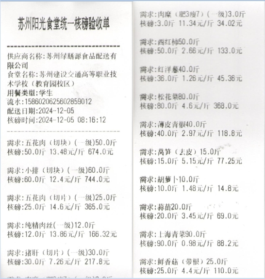 苏州阳光食堂统一核磅验收单(20241205-食材)