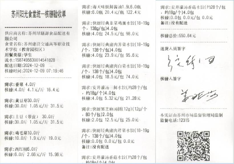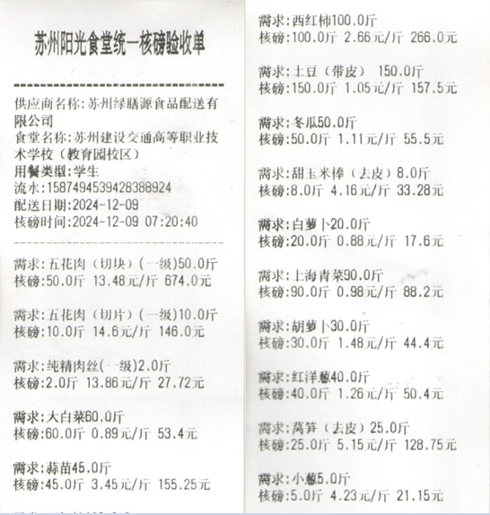 苏州阳光食堂统一核磅验收单(20241209-食材)