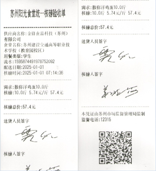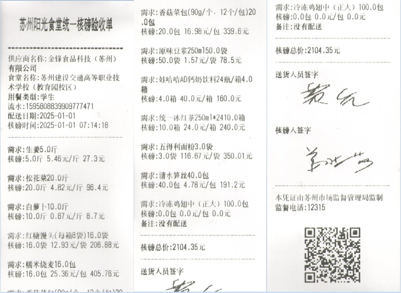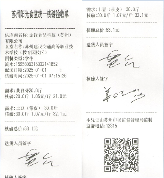 苏州阳光食堂统一核磅验收单(20250101-食材)