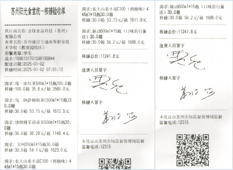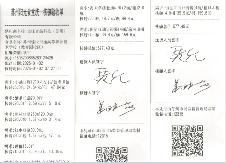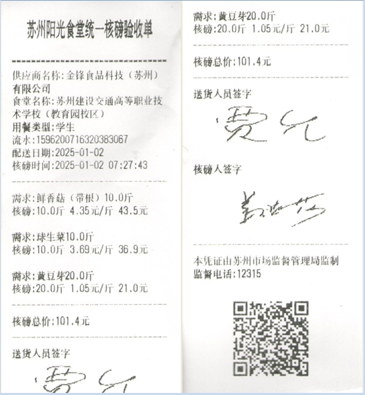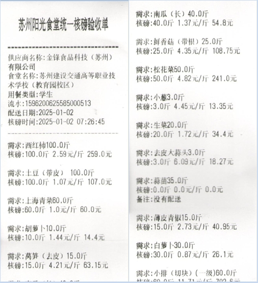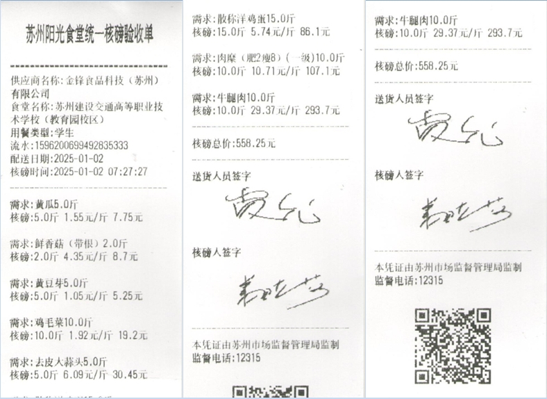 苏州阳光食堂统一核磅验收单(20250102-食材)