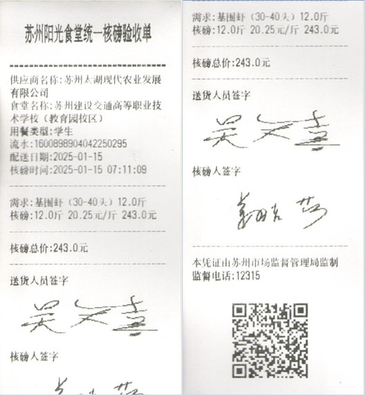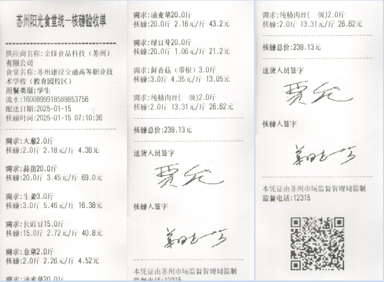 苏州阳光食堂统一核磅验收单(20250115-食材)