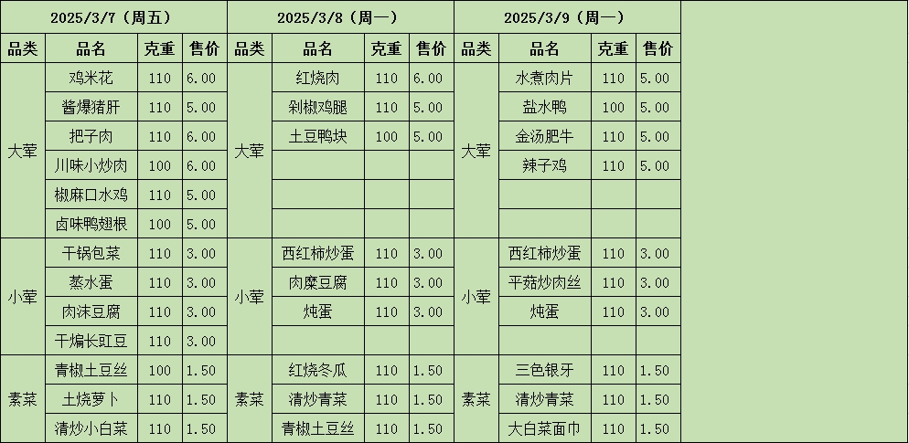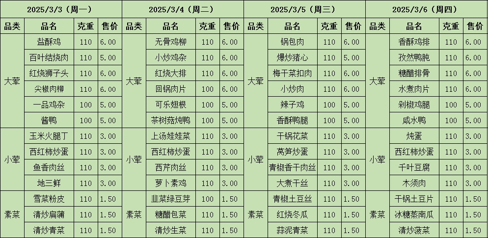 周菜单(2025年03月03日-2025年03月09日--教育园校区食堂)
