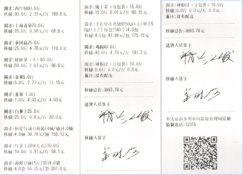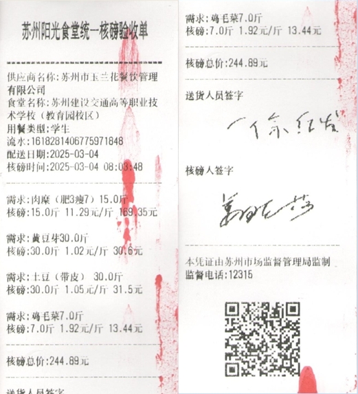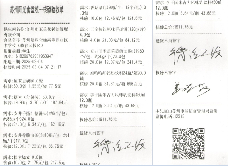苏州阳光食堂统一核磅验收单(20250304-食材)