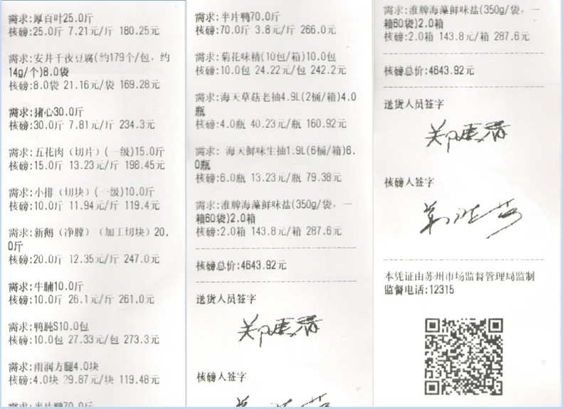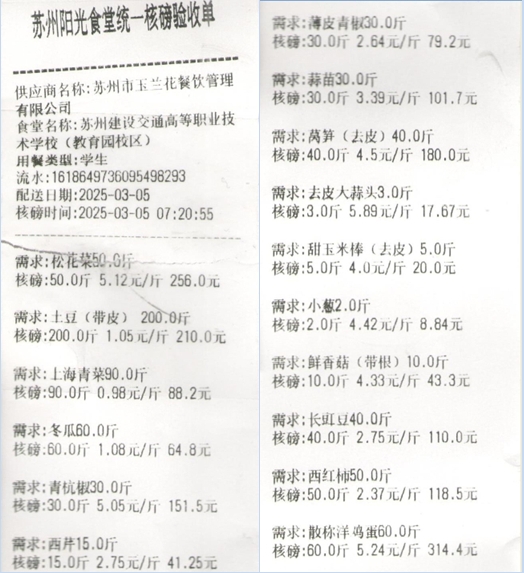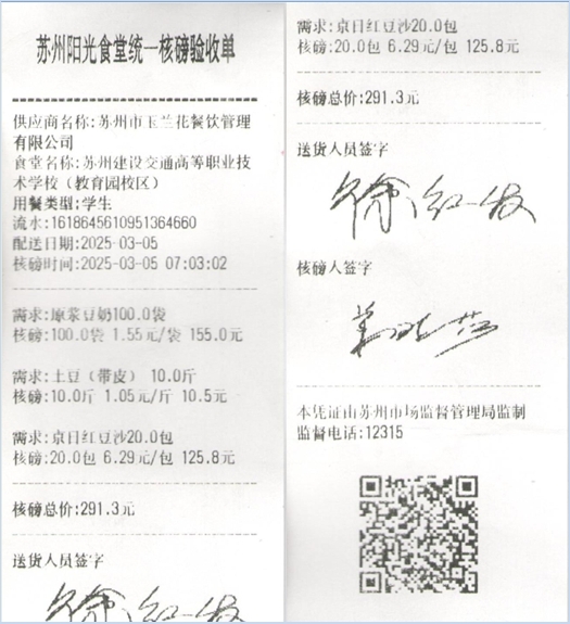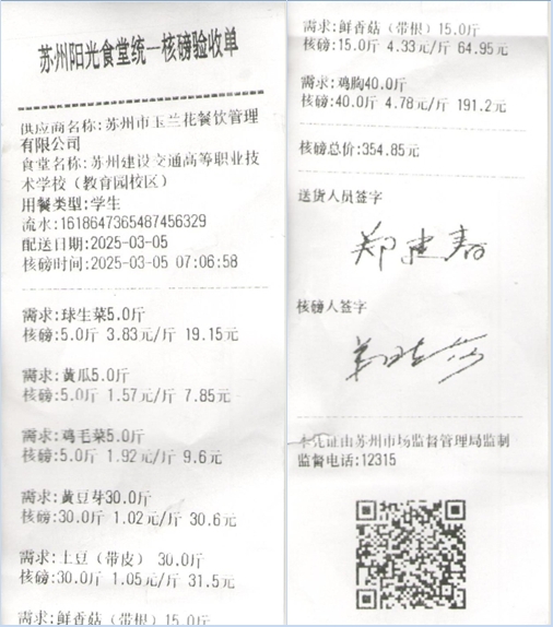 苏州阳光食堂统一核磅验收单(20250305-食材)
