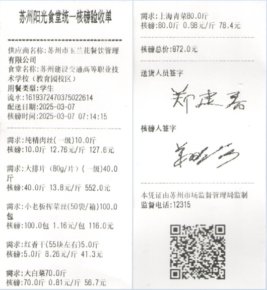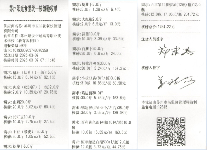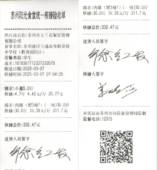 苏州阳光食堂统一核磅验收单(20250307-食材)