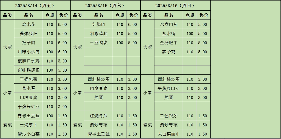 周菜单(2025年03月10日-2025年03月16日--教育园校区食堂)