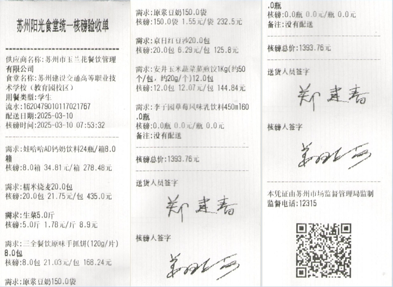 苏州阳光食堂统一核磅验收单(20250310-食材)