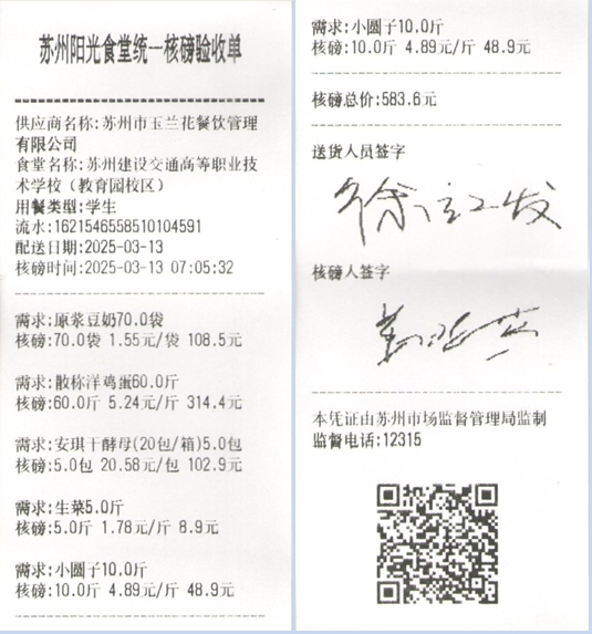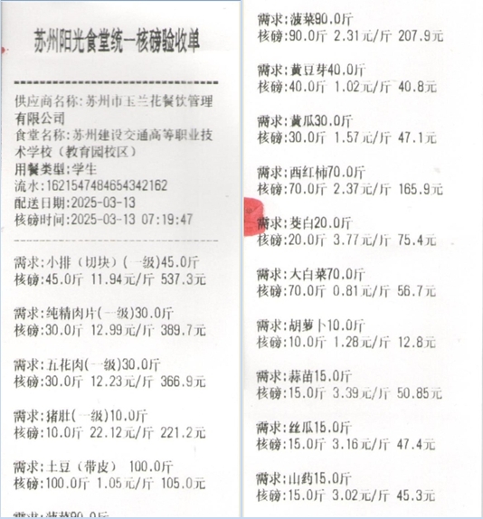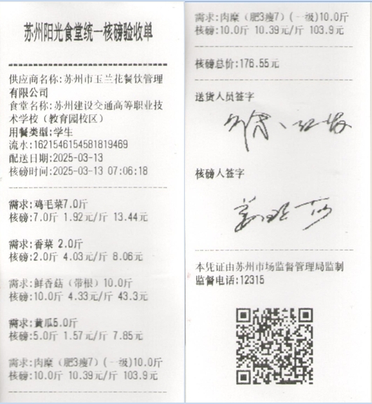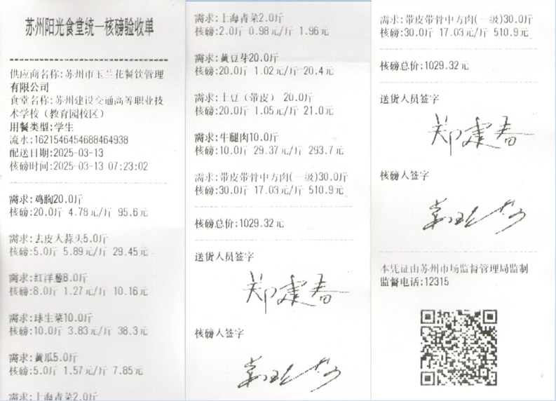 苏州阳光食堂统一核磅验收单(20250313-食材)