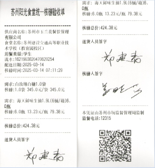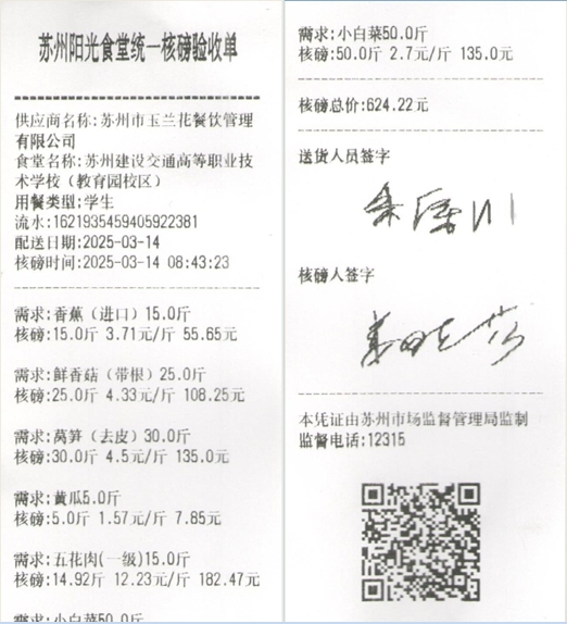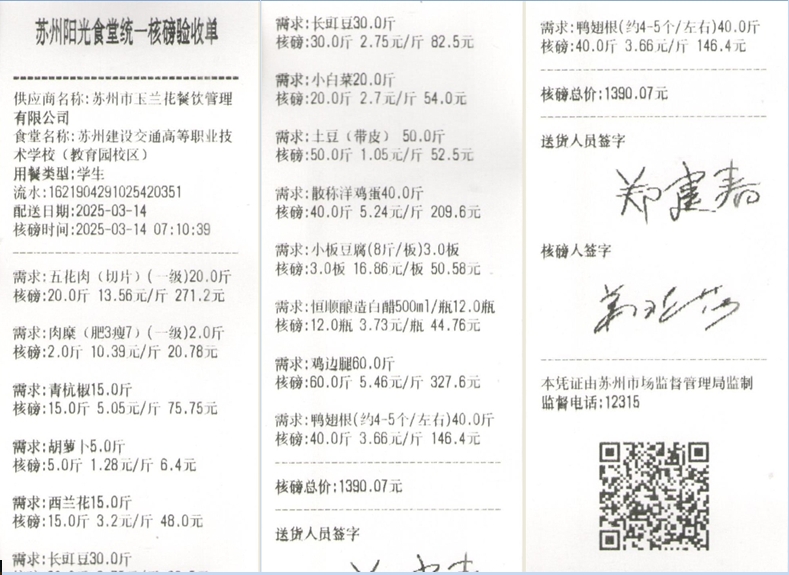 苏州阳光食堂统一核磅验收单(20250314-食材)
