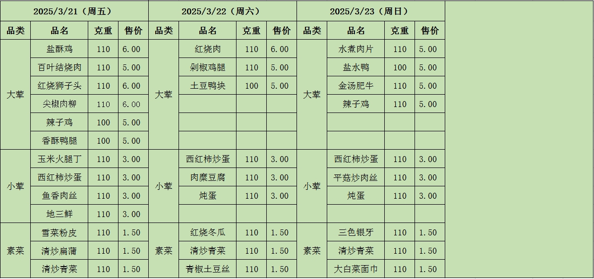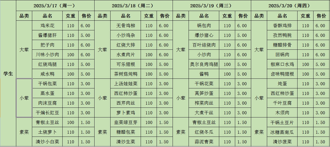 周菜单(2025年03月17日-2025年03月23日--教育园校区食堂)