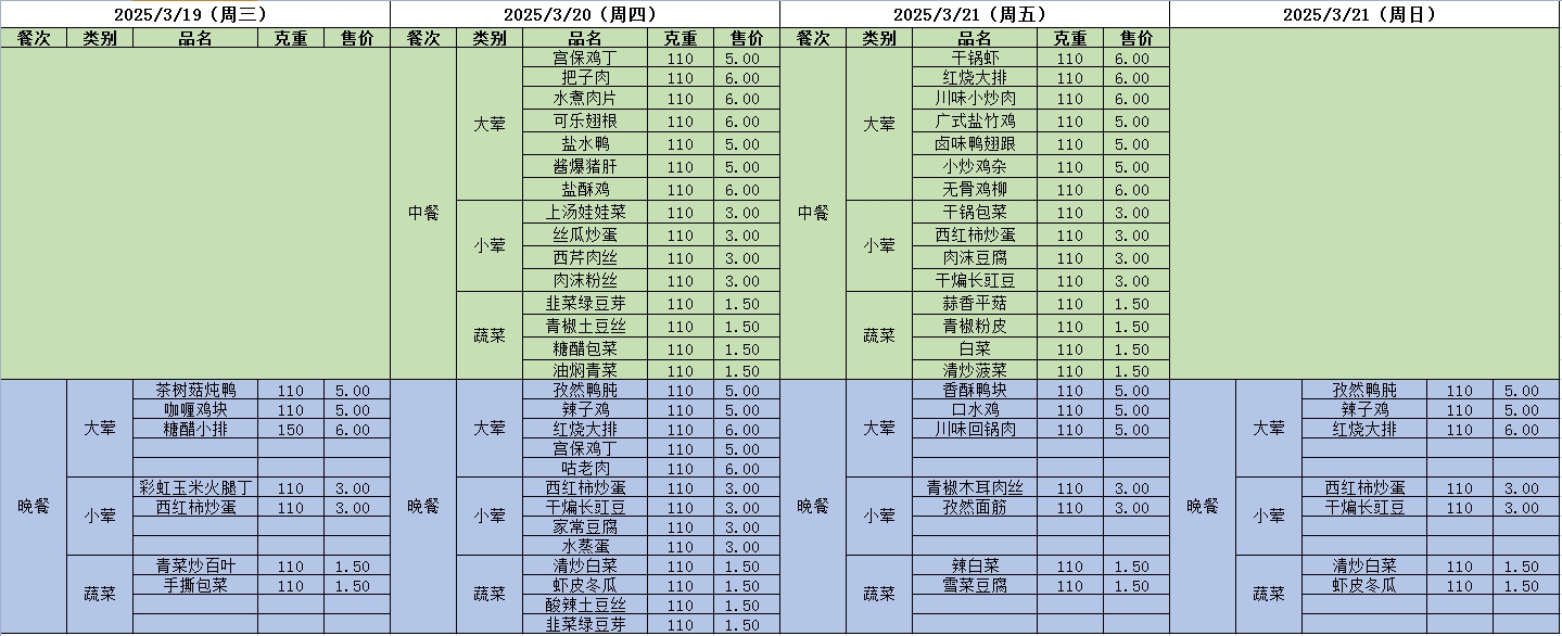 周菜单(2025年03月19日-2025年03月21日--尹山湖校区食堂)