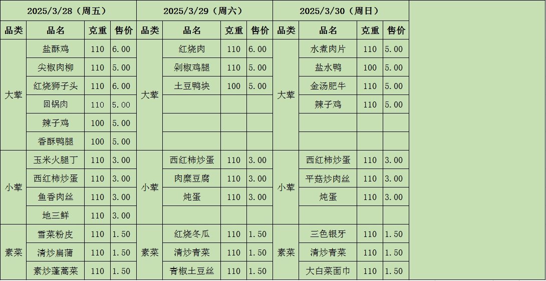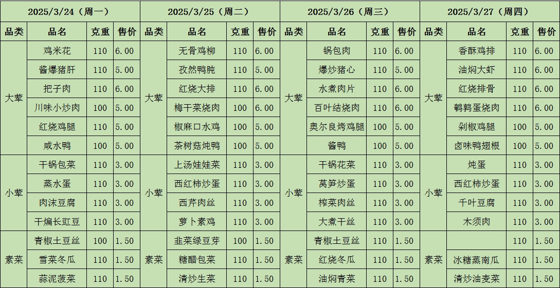 周菜单(2025年03月24日-2025年03月30日--教育园校区食堂)