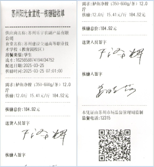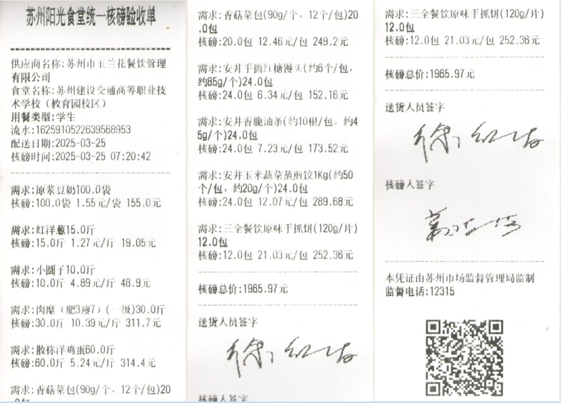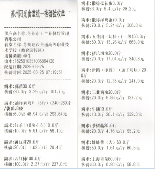 苏州阳光食堂统一核磅验收单(20250325-食材)