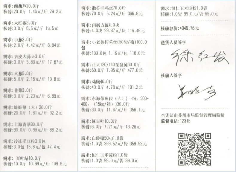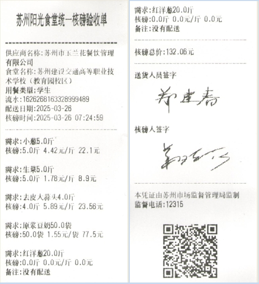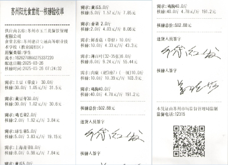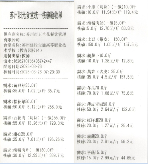 苏州阳光食堂统一核磅验收单(20250326-食材)