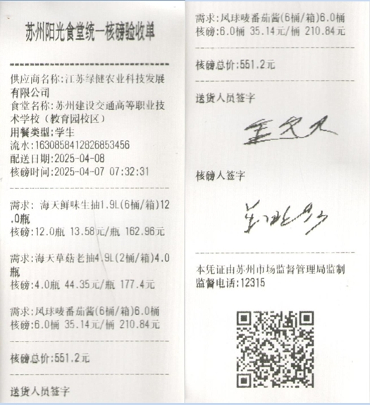 苏州阳光食堂统一核磅验收单(20250407-食材)