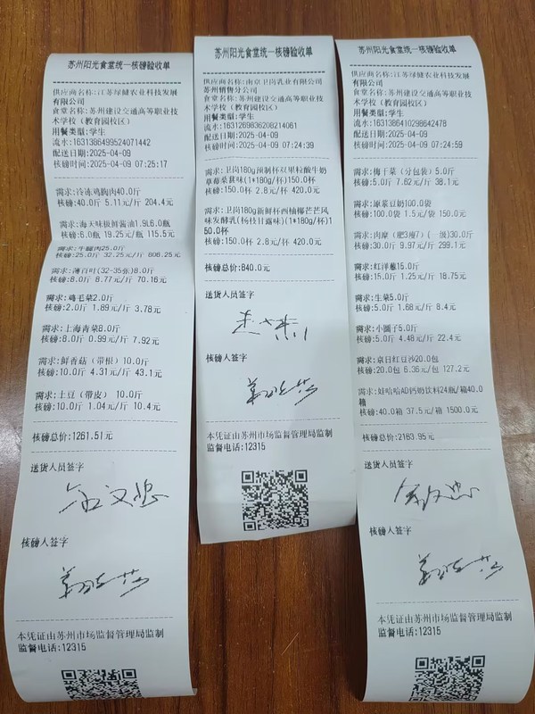 苏州阳光食堂统一核磅验收单(20250409-食材)