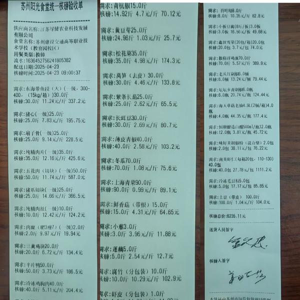 苏州阳光食堂统一核磅验收单(20250423-食材)