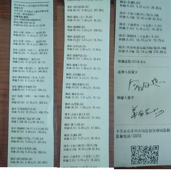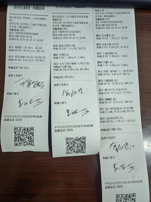苏州阳光食堂统一核磅验收单(20250424-食材)