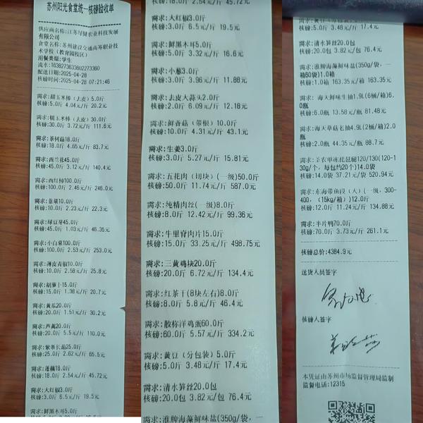 苏州阳光食堂统一核磅验收单(20250429-食材)