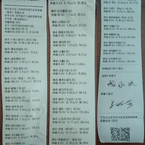 苏州阳光食堂统一核磅验收单(20250512-食材)