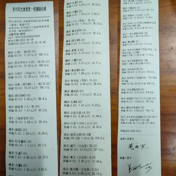 苏州阳光食堂统一核磅验收单(20250518-食材)