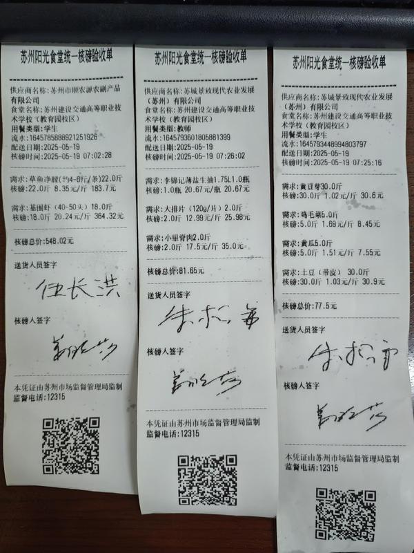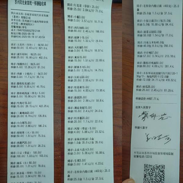 苏州阳光食堂统一核磅验收单(20250519-食材)