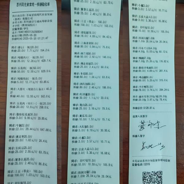 苏州阳光食堂统一核磅验收单(20250520-食材)