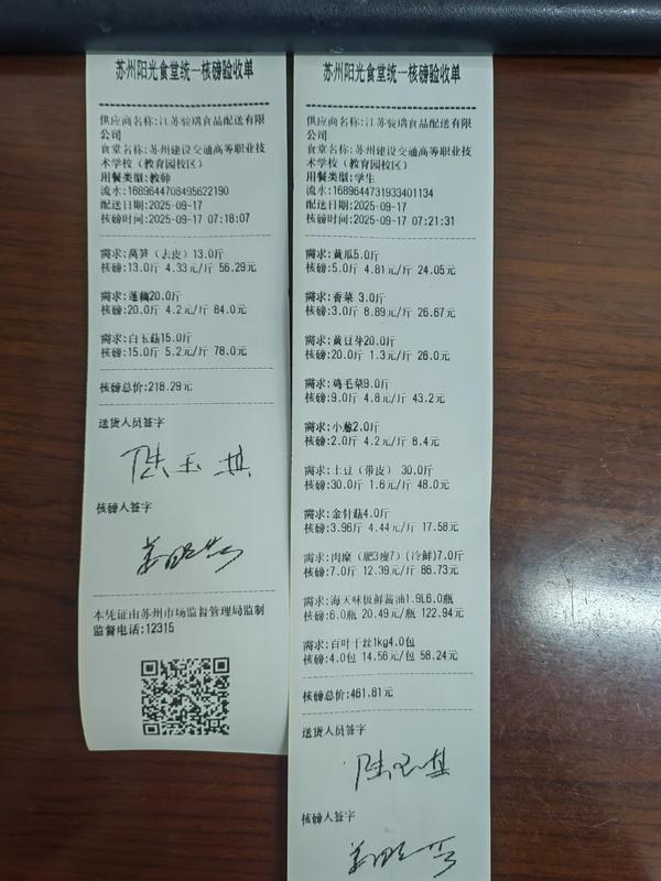 苏州阳光食堂统一核磅验收单(20250917-食材)