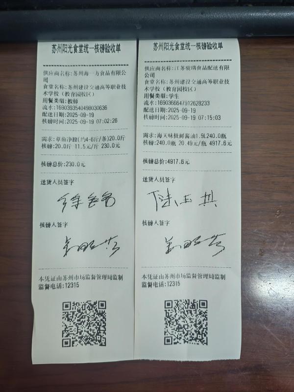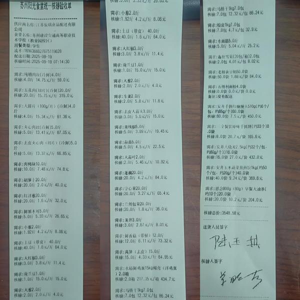苏州阳光食堂统一核磅验收单(20250919-食材)