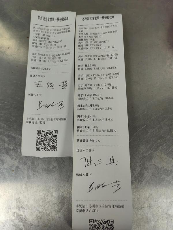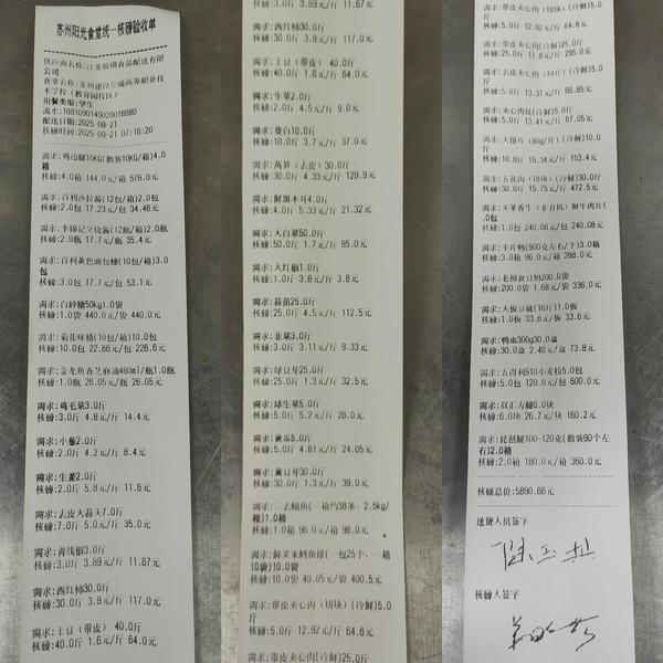 苏州阳光食堂统一核磅验收单(20250921-食材)