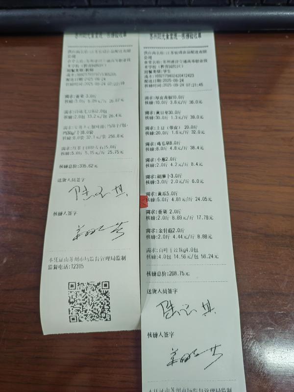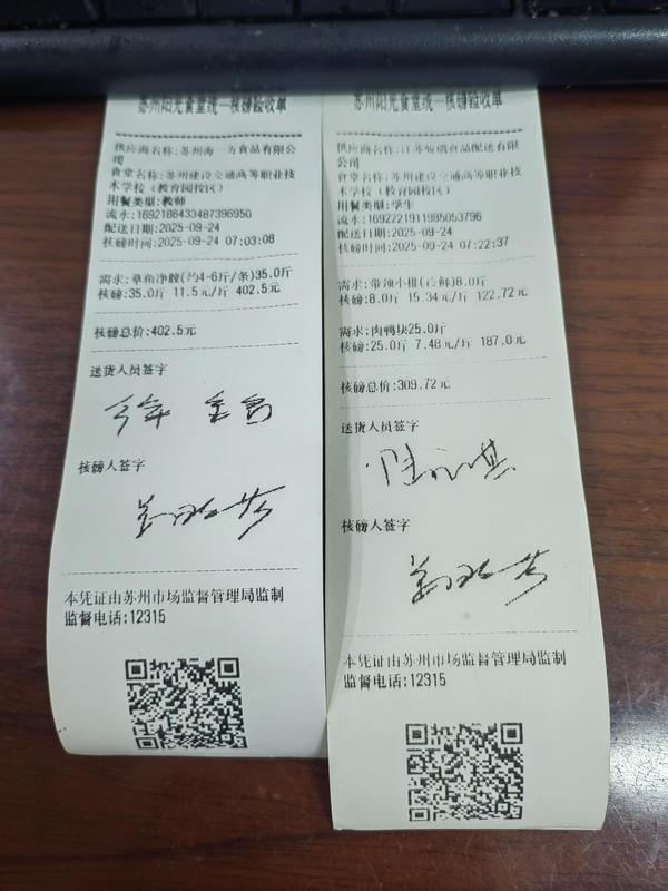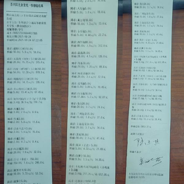 苏州阳光食堂统一核磅验收单(20250924-食材)