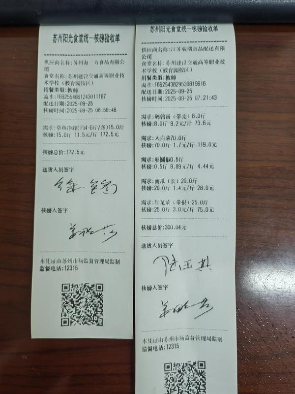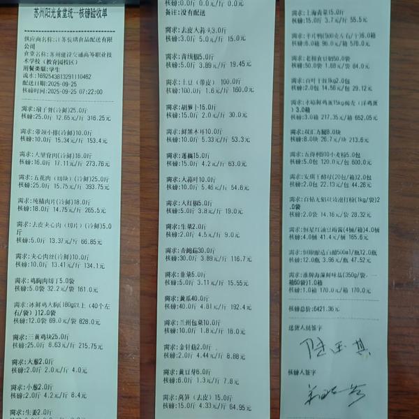 苏州阳光食堂统一核磅验收单(20250925-食材)