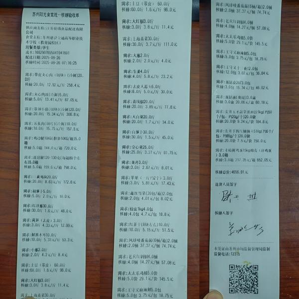 苏州阳光食堂统一核磅验收单(20250926-食材)
